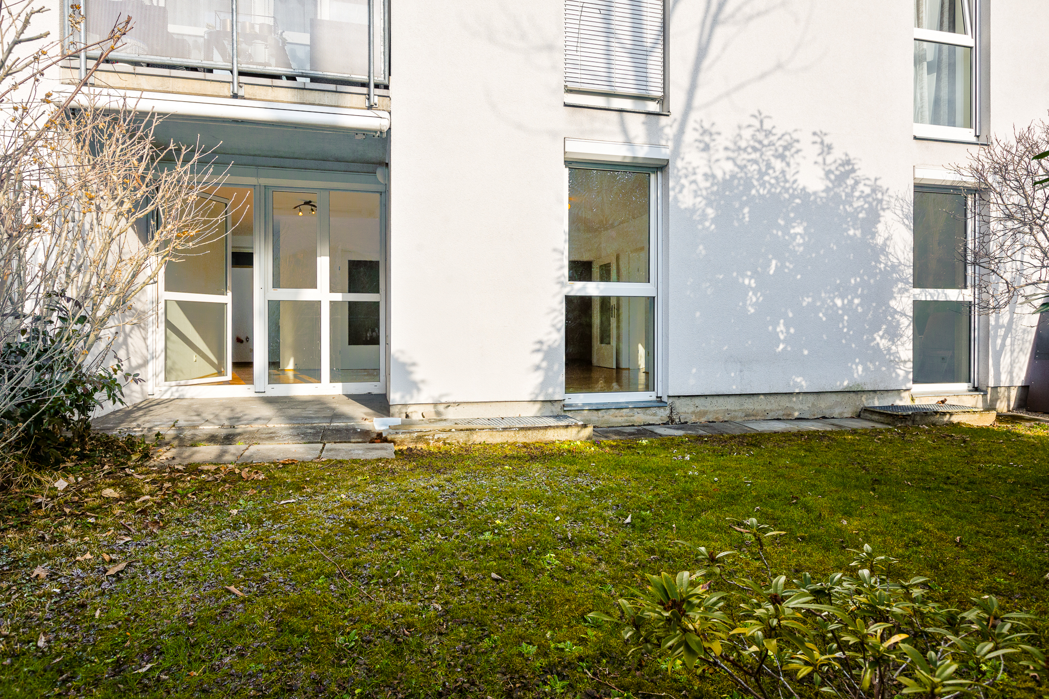 ● Terrasse (ca. 4 m²) mit Garten (ca. 53 m²): Ruhige Atmosphäre, südwest-Ausrichtung.