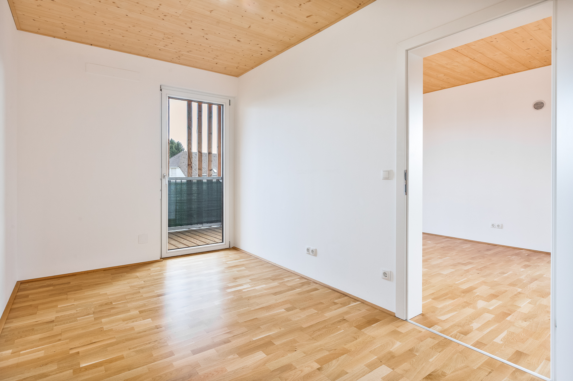● 2 Zimmer (10,95 u. 10,15 m²) : Beide Zimmer sind getrennt begehbar (eines vom Flur, eines vom Wohnbereich) und verfügen jeweils über einen eigenen Zugang zum Balkon.