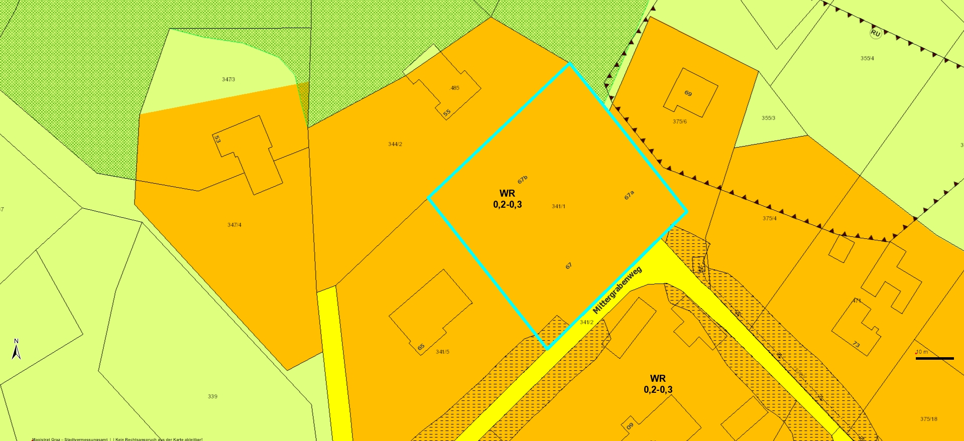 • Flächenwidmung: Bauland (WR = Reines Wohngebiet)
