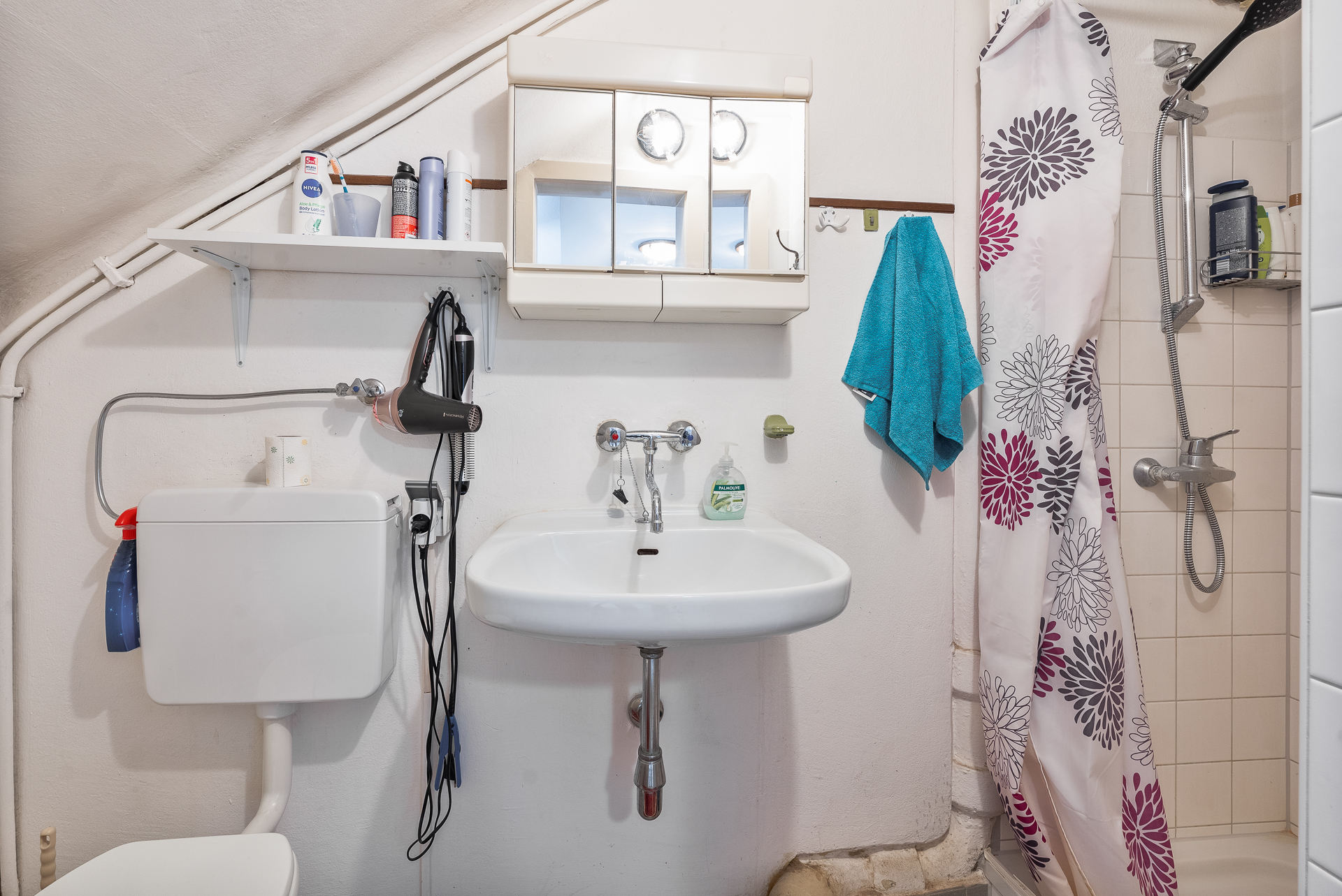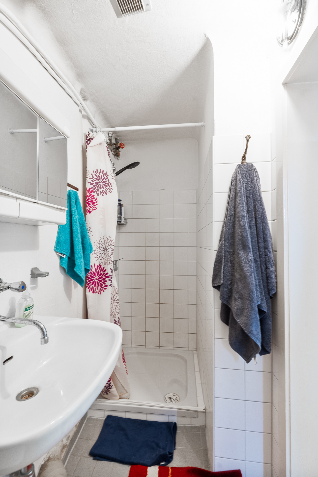 ● Badezimmer inkl. WC: Zugang über die Küche; ausgestattet mit Dusche, Waschbecken, Spiegelschrank und WC.