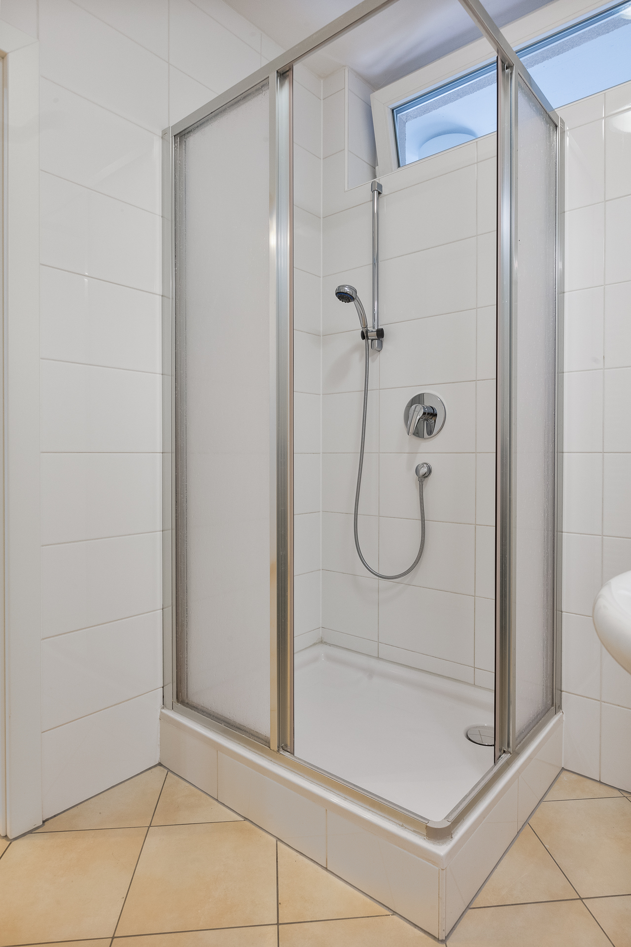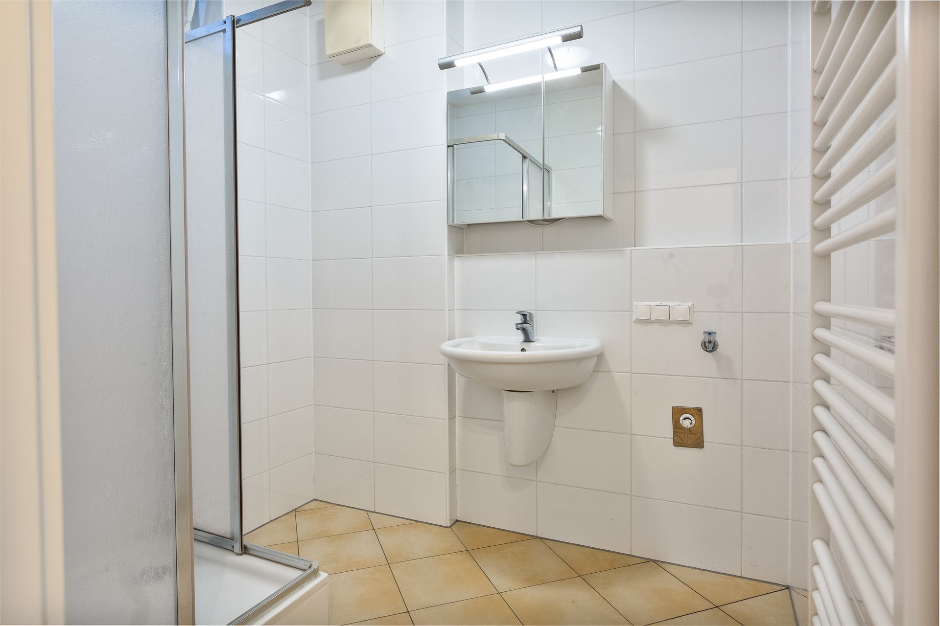● Badezimmer: Ausgestattet mit Duschkabine, Waschbecken, Spiegelschrank, Handtuchtrockner, Waschmaschinenanschluss & Fenster.