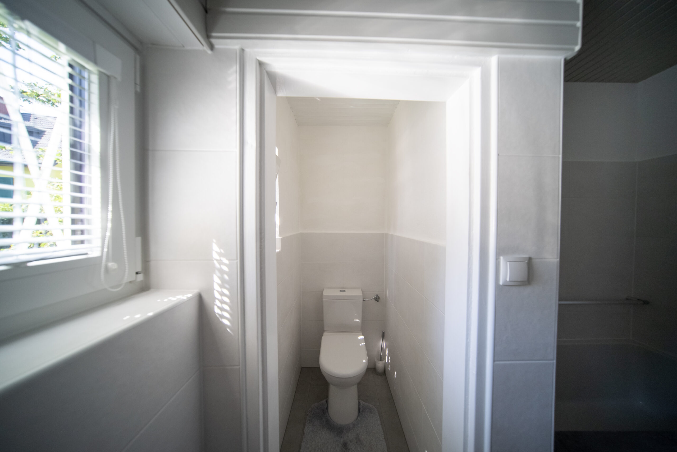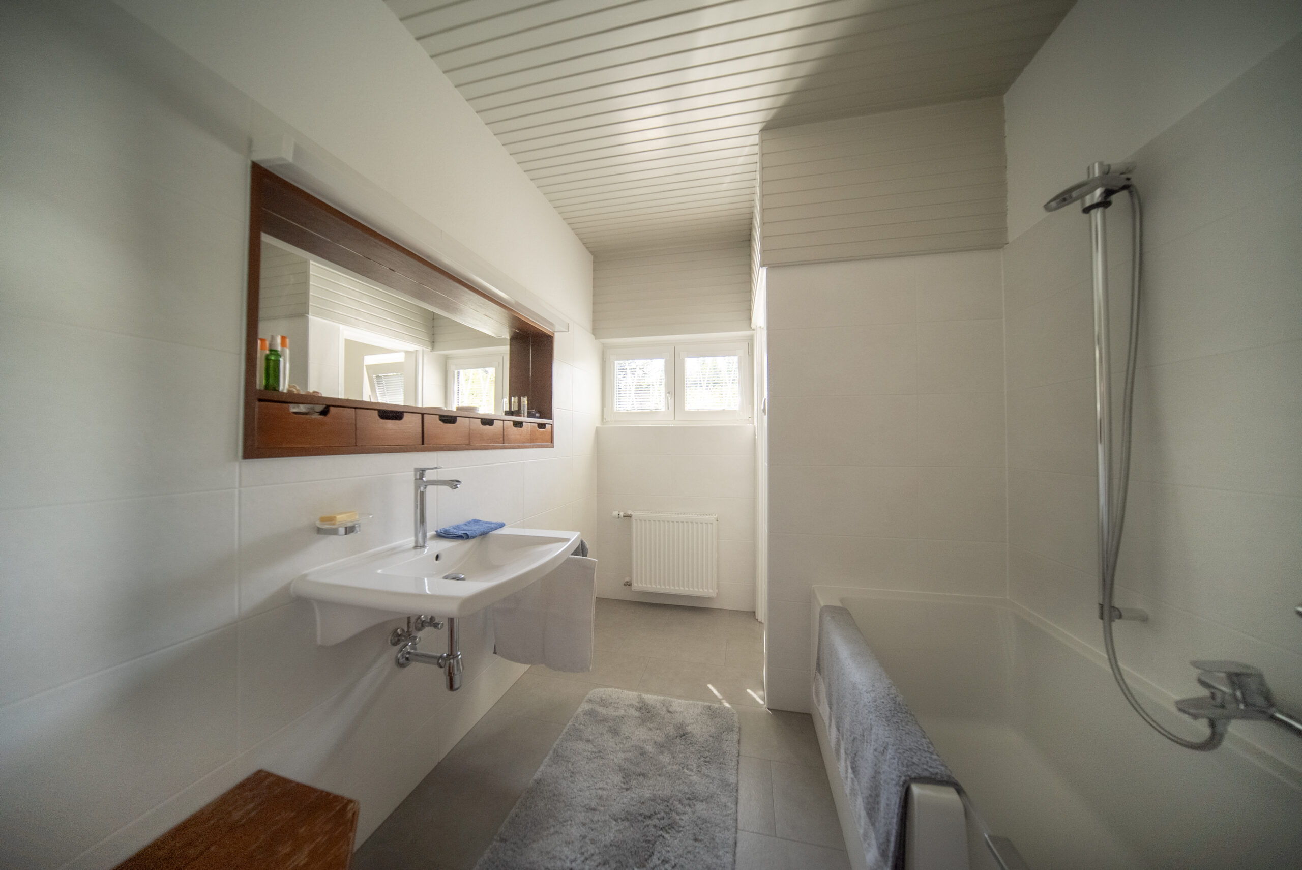 Beim Betreten des Hauses durch die Eingangstür gelangt man in einen zentralen Vorraum mit offenen Stiegenaufgang ins Dachgeschoss. Vom Vorraum ausgehend sind alle Räume des Hauses zugänglich. Gleich neben dem Eingang befindet sich das erste Zimmer (12,20 m²), welches ideal als Gästezimmer oder Büro genutzt werden kann. Nebenan befindet sich das neuwertige Tageslichtbadezimmer inklusive WC.
