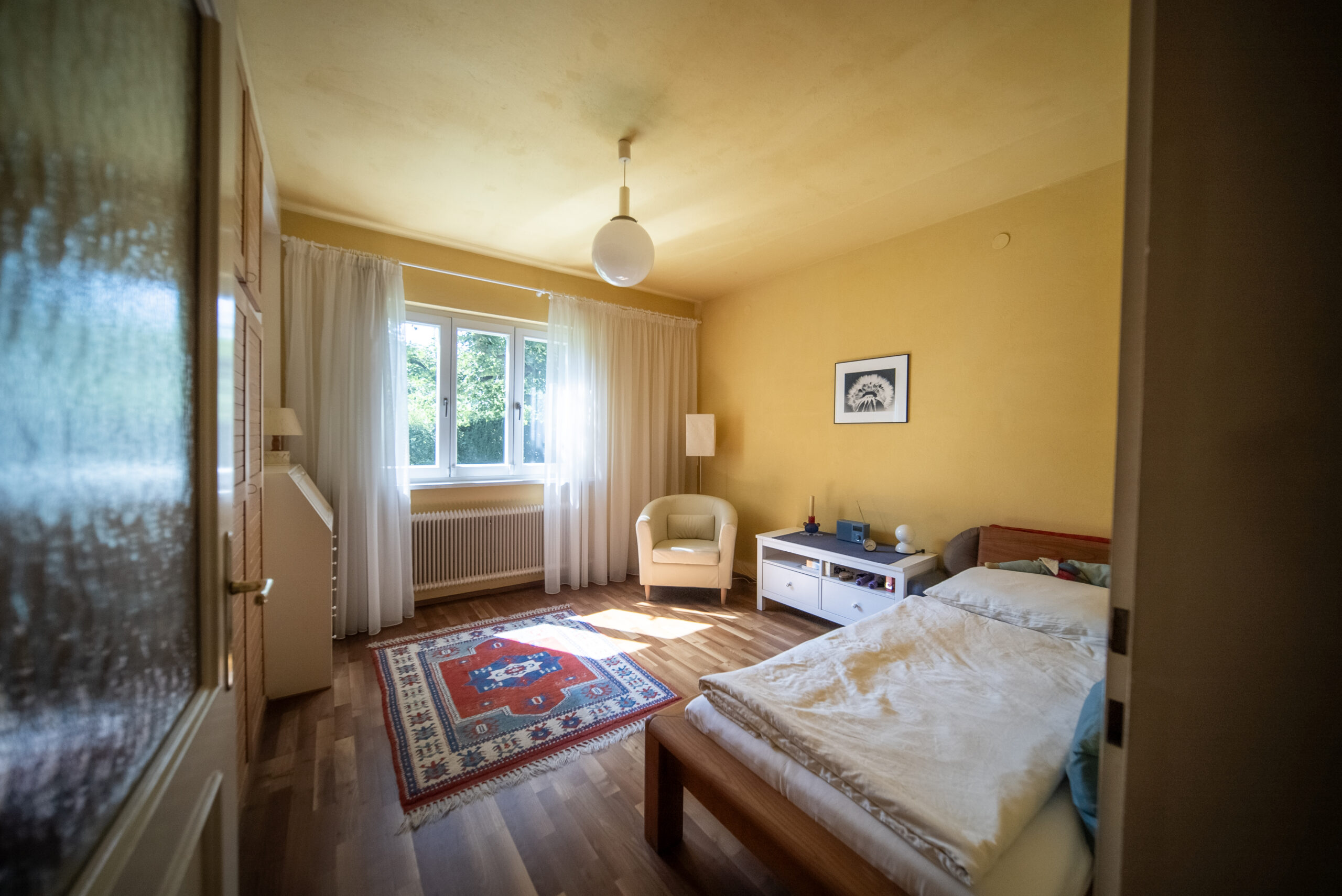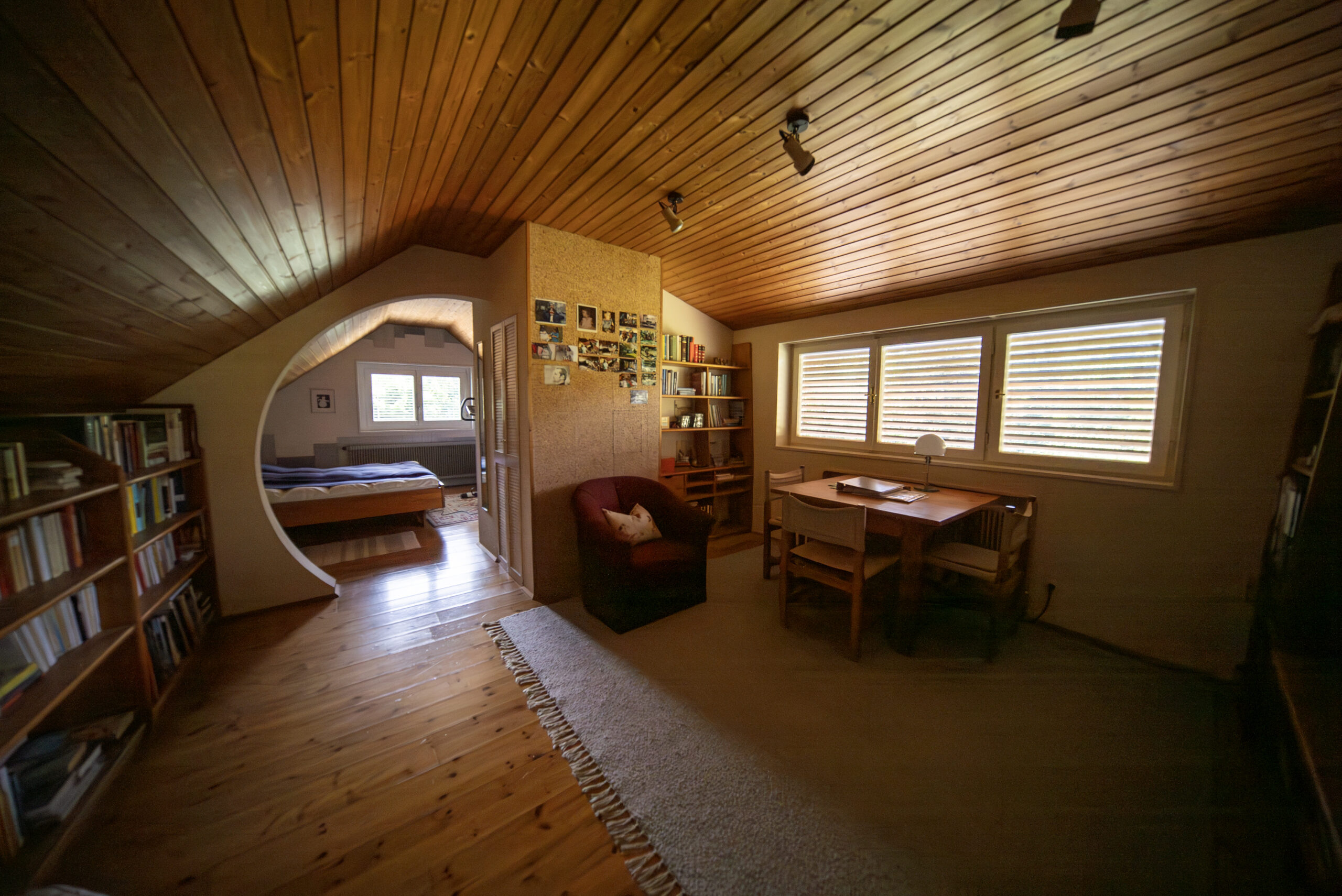 Im Dachgeschoss befinden sich zwei Zimmer, eines davon ist ein Durchgangszimmer mit Dachgaube.