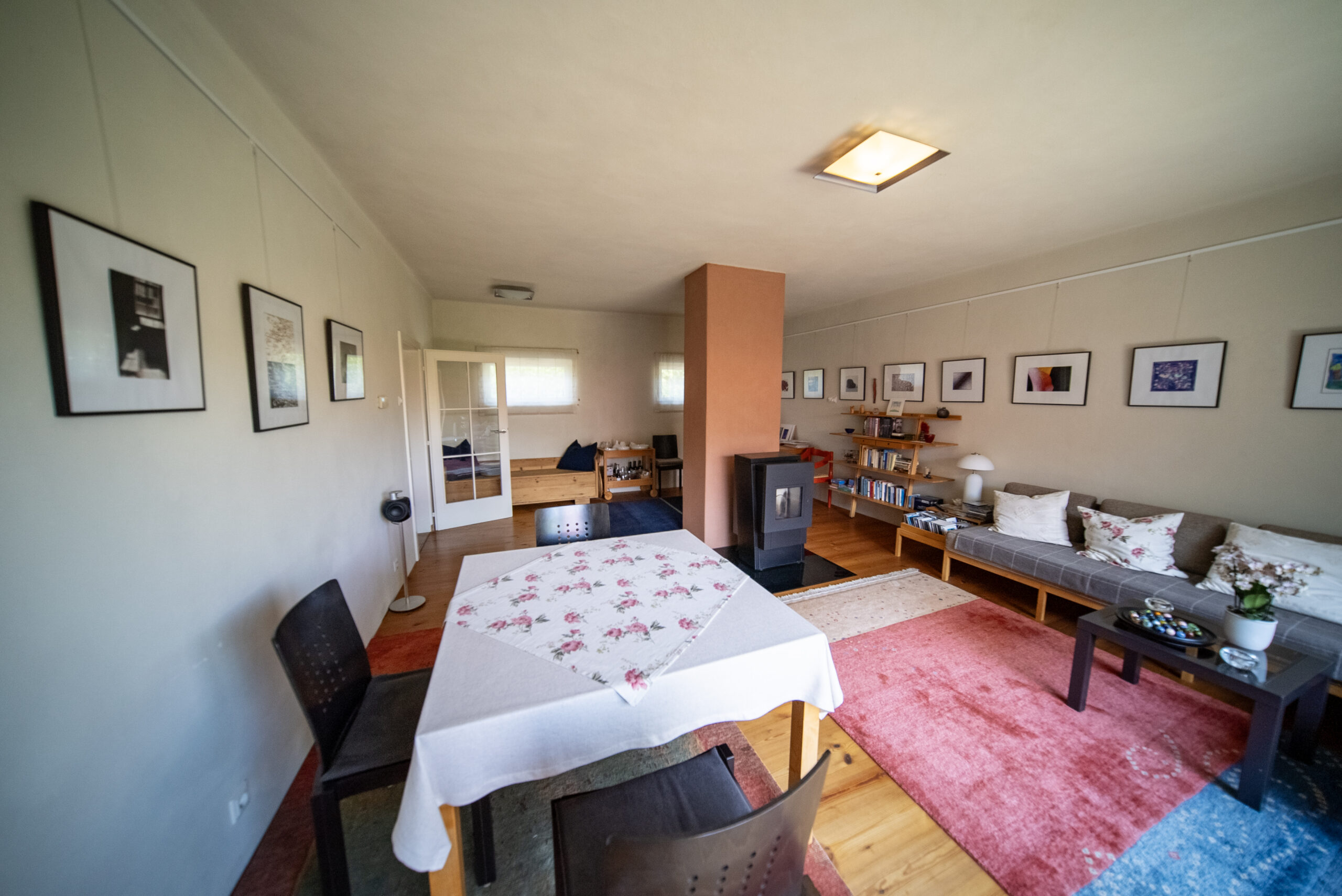 Beheizt wird das Haus mittels Stromzentralheizung. In beiden Wohnräumen im Erdgeschoss gibt es zusätzlich einen Holz/Pellets-Ofen (Kombigerät).